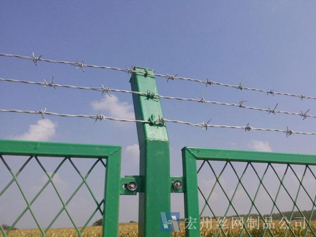 刺繩隔離網(wǎng),刺絲護(hù)欄網(wǎng),刺鐵絲隔離柵,刺繩護(hù)欄網(wǎng),鍍鋅刺網(wǎng)。宏州護(hù)欄網(wǎng)廠生產(chǎn)的產(chǎn)品主要分鍍鋅,浸塑兩種,是以立柱加刺繩制作而成, 刺繩刺鐵絲。