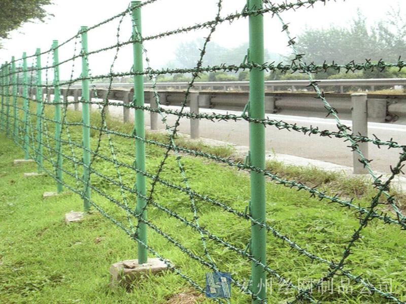 刺繩隔離網(wǎng)產(chǎn)品用途:由于刺線網(wǎng)造型獨(dú)特,因而能達(dá)到極好的防護(hù)效果。泛應(yīng)用于軍事、監(jiān)獄、看守所、政府機(jī)關(guān)、銀行、以及生活小區(qū)的圍墻,私人住宅、別墅的圍墻門窗,高速公路、鐵路護(hù)欄,邊境線等用來防固保安的隔離圍墻,明顯已成為高級(jí)圍籬之主流。